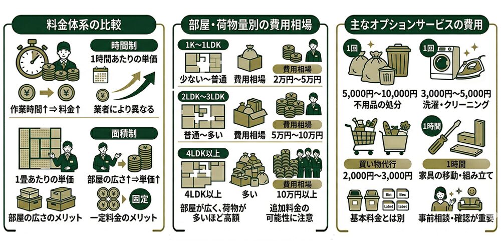 片付けサービスの料金体系は、主に以下の2つに分かれます。