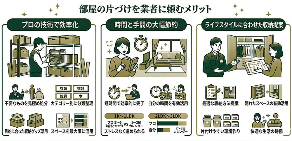 ここでは、部屋の片付けを業者に頼むことのメリットについて詳しく解説します。